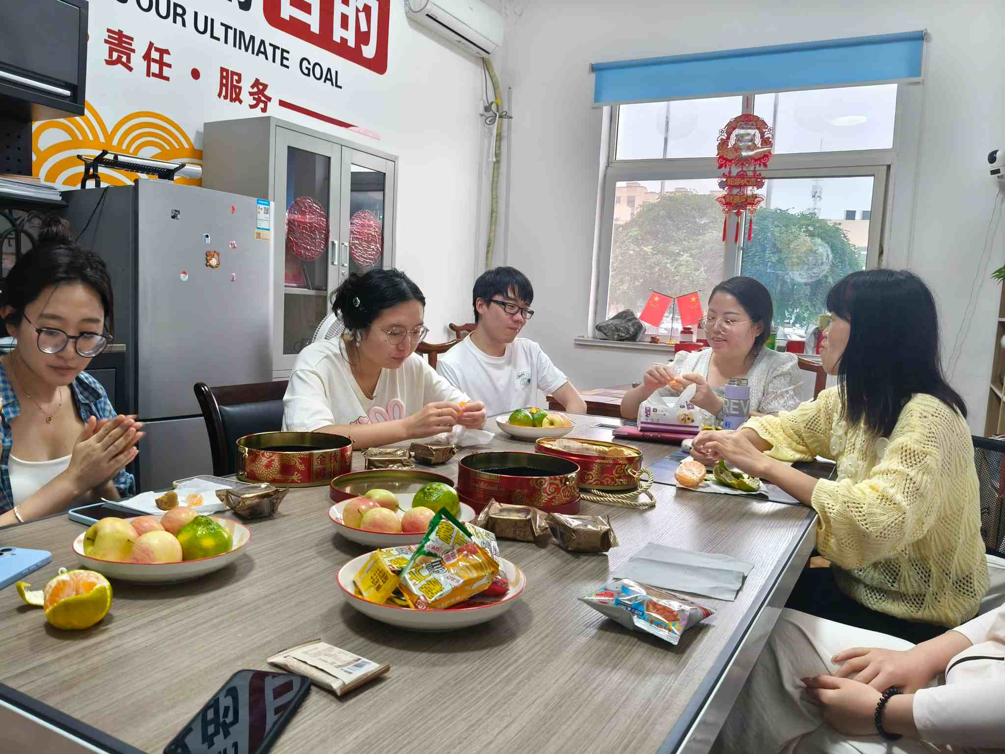 오늘 오후에는 우 매니저가제메이지아스낵과 과일을 포함한 맛있는 애프터눈 티를 준비했습니다. 모두 함께 따뜻한 오후의 티타임을 즐겼습니다.