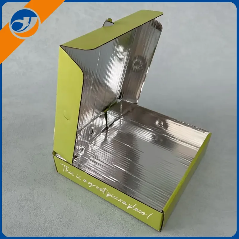 •PE 라미네이션 처리된 고밀도 식품등급 판지로 제작되어 외부 빗물과 습기를 효과적으로 차단하여 피자를 건조하게 유지합니다.